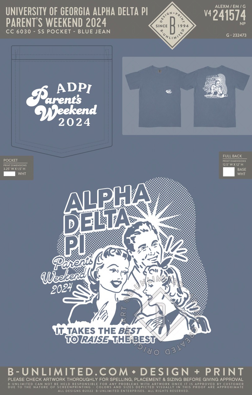 Source : georgiadogs.comUGA ADPI Parent’s Weekend 2024 CC 6030 SS Pocket Blue